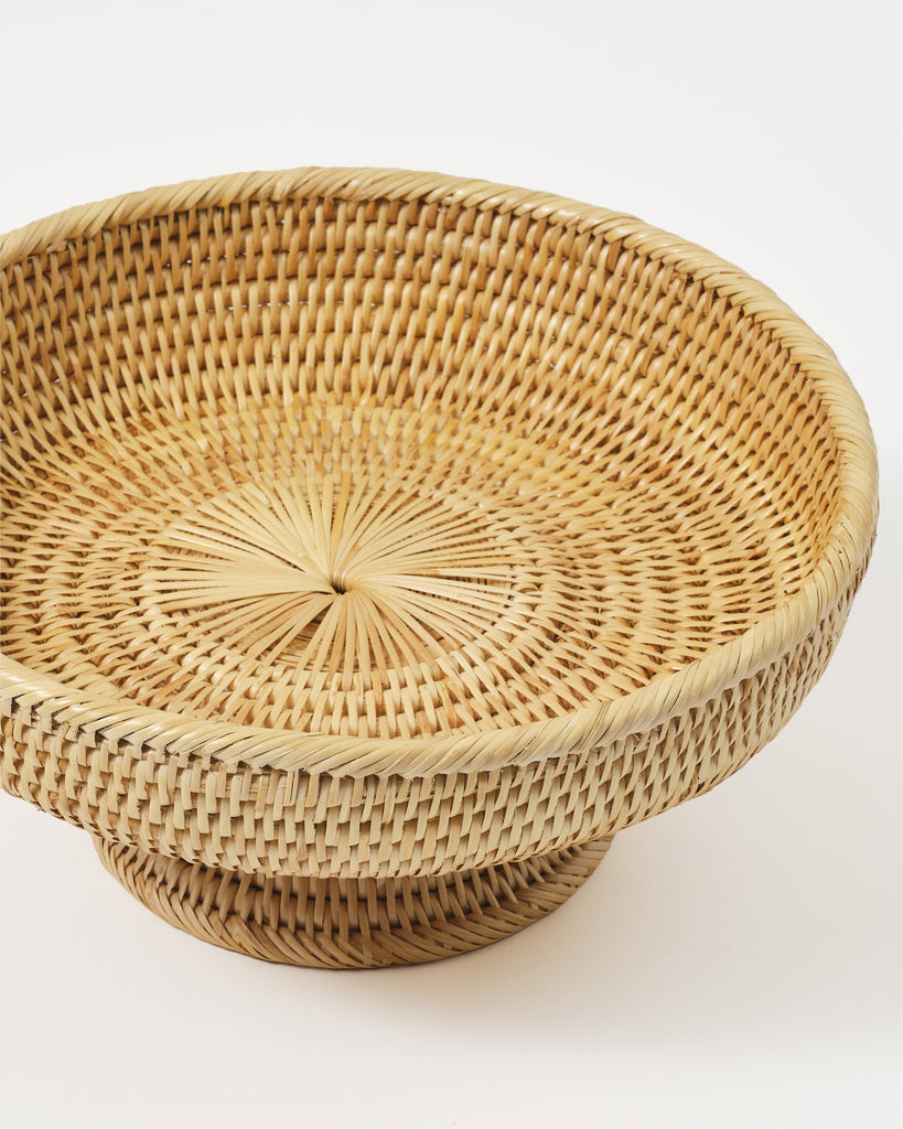 The Woven Sabbia Fruit Stand is a delightful piece that combines both form and function. Handwoven from a sustainable rattan, it is both sturdy and durable, featuring an intricate weave that will add a touch of rustic charm to any setting.