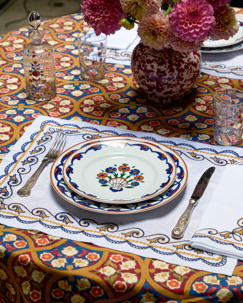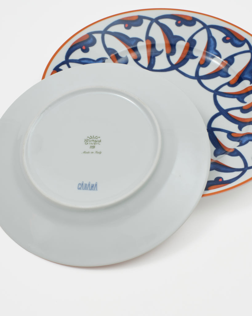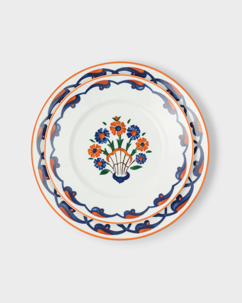 Elevate your table setting with the Anatolia Dessert Plate, a masterful creation designed by Cabana and produced by legendary porcelain house Ginori 1735. This exquisite porcelain plate draws inspiration from the beauty of Ottoman era motifs, featuring an elegant interlocking design.