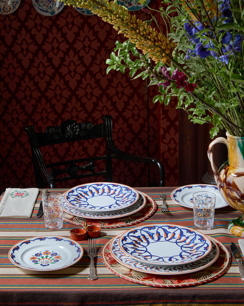 Elevate your table setting with the Anatolia Dinner Plate, a masterful creation designed by Cabana and produced by legendary porcelain house Ginori 1735. This exquisite porcelain plate draws inspiration from the beauty of Ottoman era motifs, featuring an elegant interlocking design.