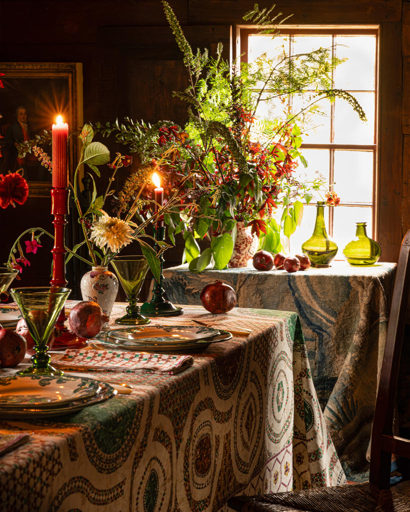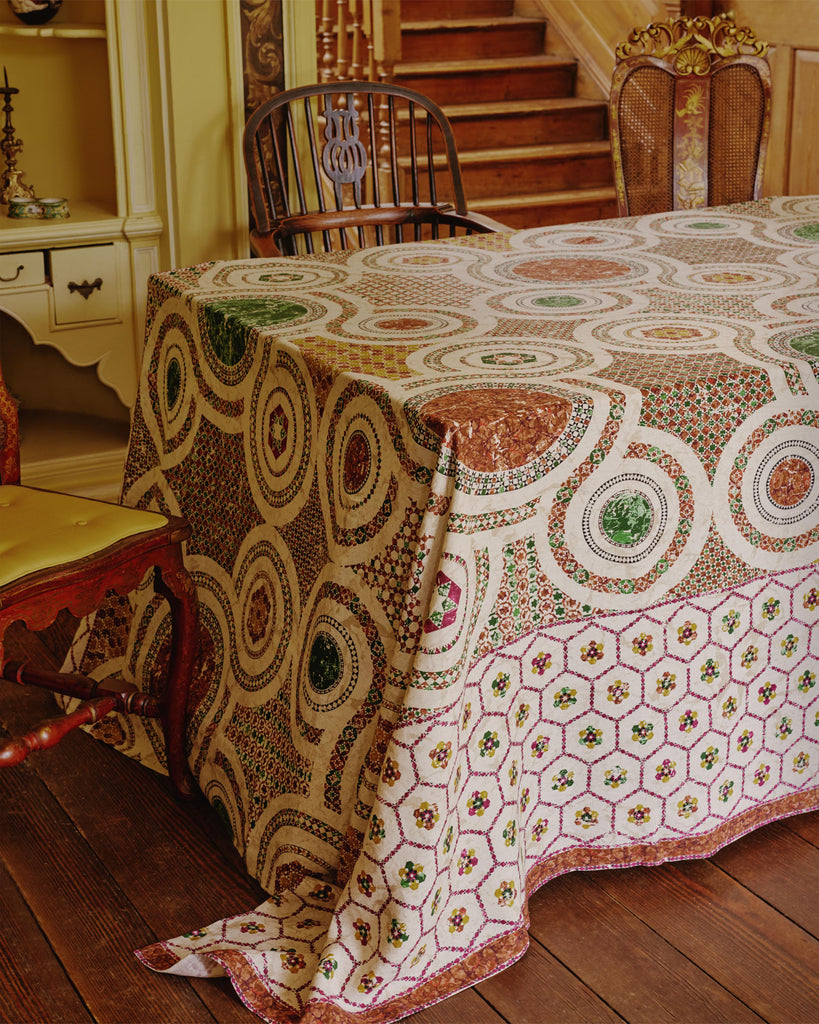 Crafted in homage to the legendary Roman Cosmati family, experts in 12th-century geometric stone mosaics, the Cosmati Tablecloth transports you to the opulent halls of medieval churches and palaces across the Roman and Byzantine world. The the collection features tablecloths, napkins, and placemats made with 100% linen and 100% hand-spun, hand-woven cotton embellished with hand embroidery and handmade tassels.