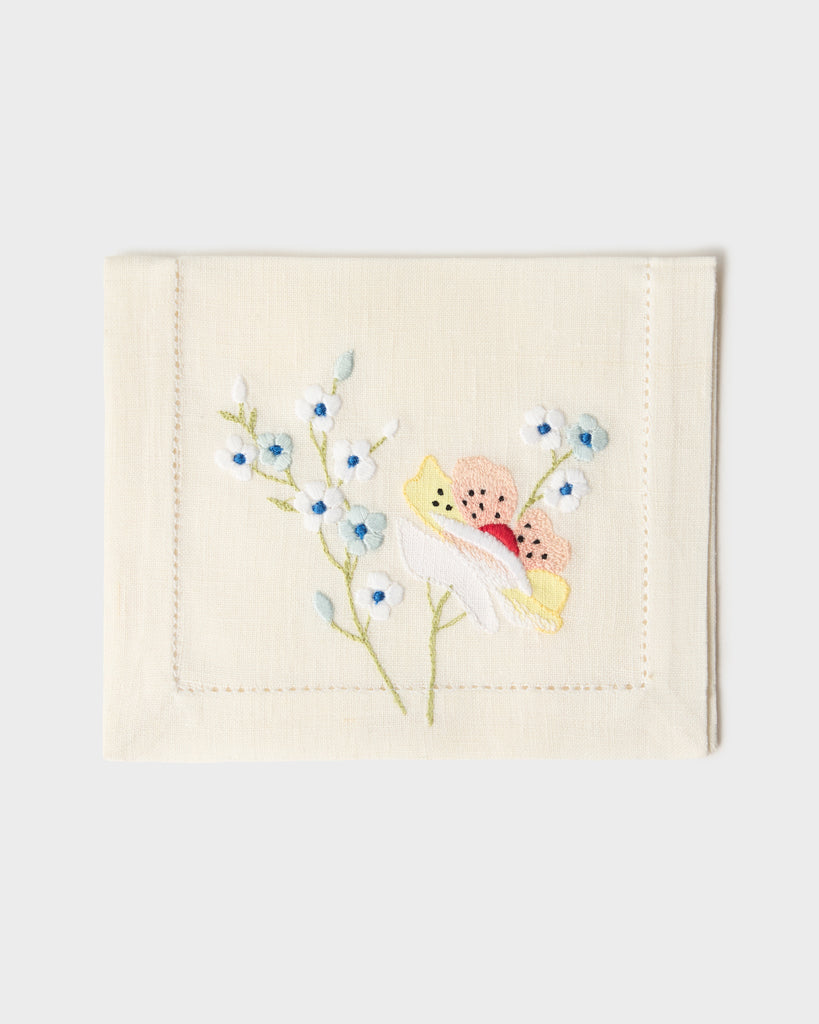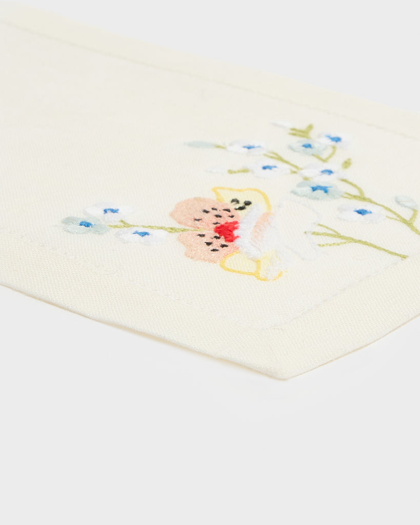 Featuring a harmonious blend of hand-painted designs and intricate embroidery, it exudes a refined, artisanal charm. With its delicate floral embellishments, this napkin adds a touch of sophistication to any table.