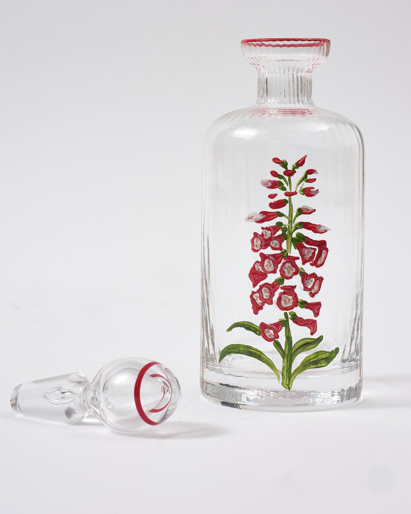 These charming glass bottles are hand-blown and hand-painted in Italy from the highest quality Venetian glass. Each one is decorated with a red and green floral motif inspired by the historic textiles. The eclectic mélange of artisanship and design inspiration typifies the Cabana spirt, which always searches new juxtapositions of references while honouring the highest standards of craft and material. The bottle features a contrasting red rim, and is perfect as an oil bottle or as a tiny vase for flowers.