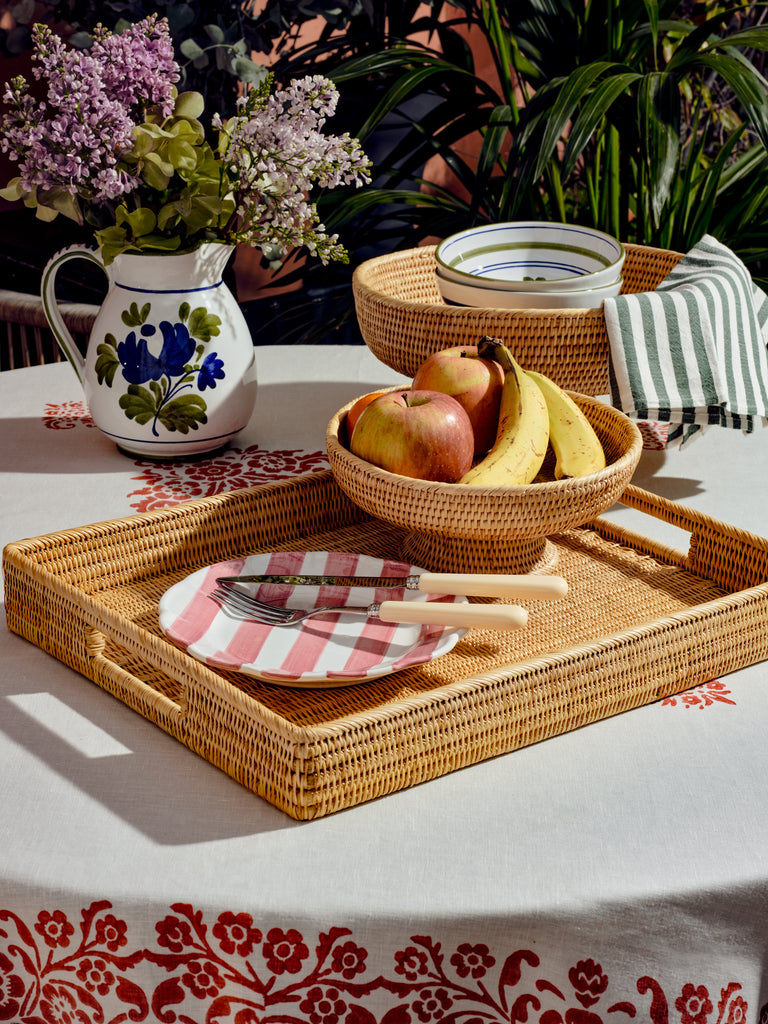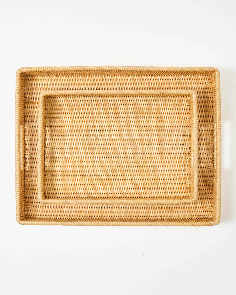 The Woven Sabbia Serving Tray is handwoven from a sustainable rattan and features two handles. The intricacy of the weave will add a touch of rustic charm to any setting. These delightful trays are available in three different sizes, this one being the largest size.