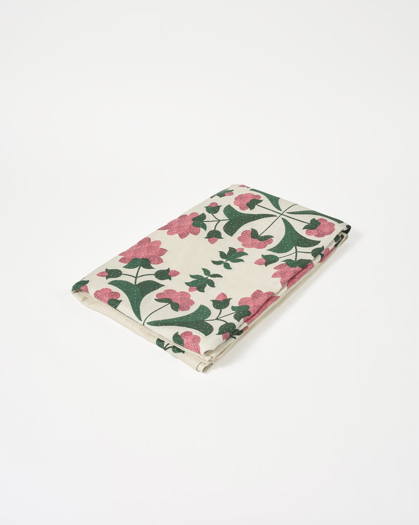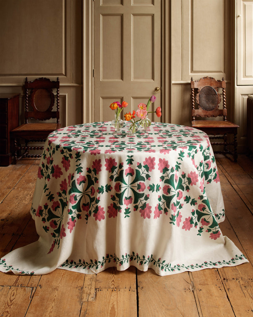 Inspired by an American appliqué quilt from the 1950s, the Garda Tablecloth is a tribute to craftsmanship. The nostalgic soft tones of pink and green in the geometric pattern create an elegant stage for an inviting and stylish dining experience. Matching napkins available.