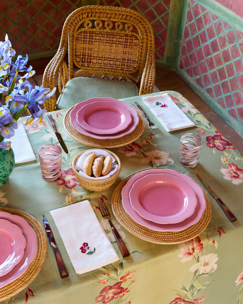 Crafted in Italy with a vibrant pink glaze and scalloped edges, the Fiore Dessert Plate elevates every day dining. Pair them with their matching dinner plates and bowls to complete the set.