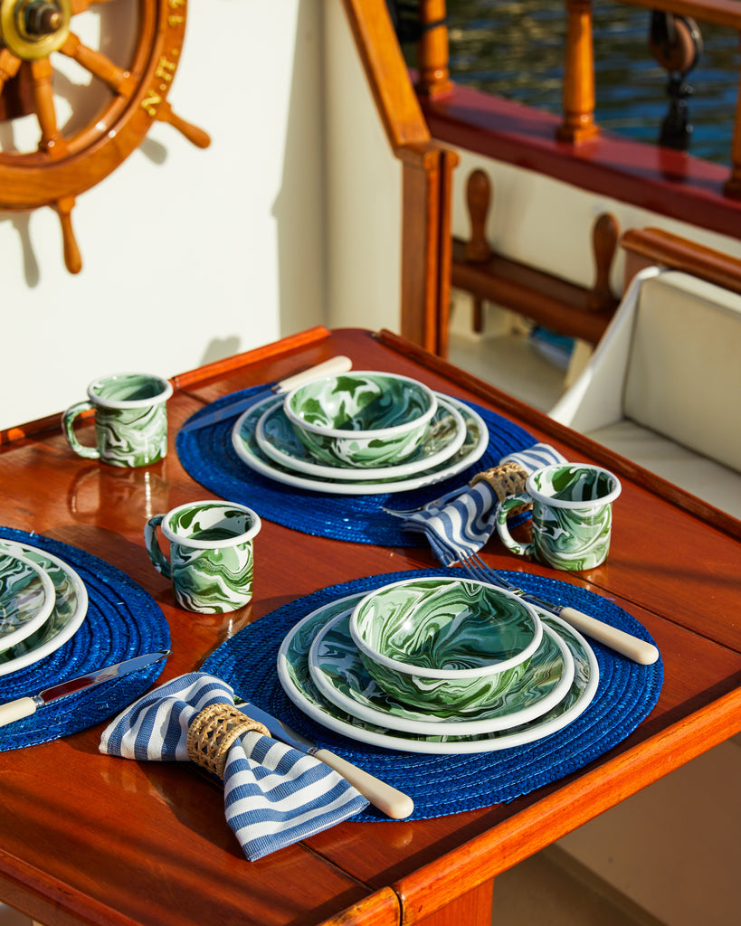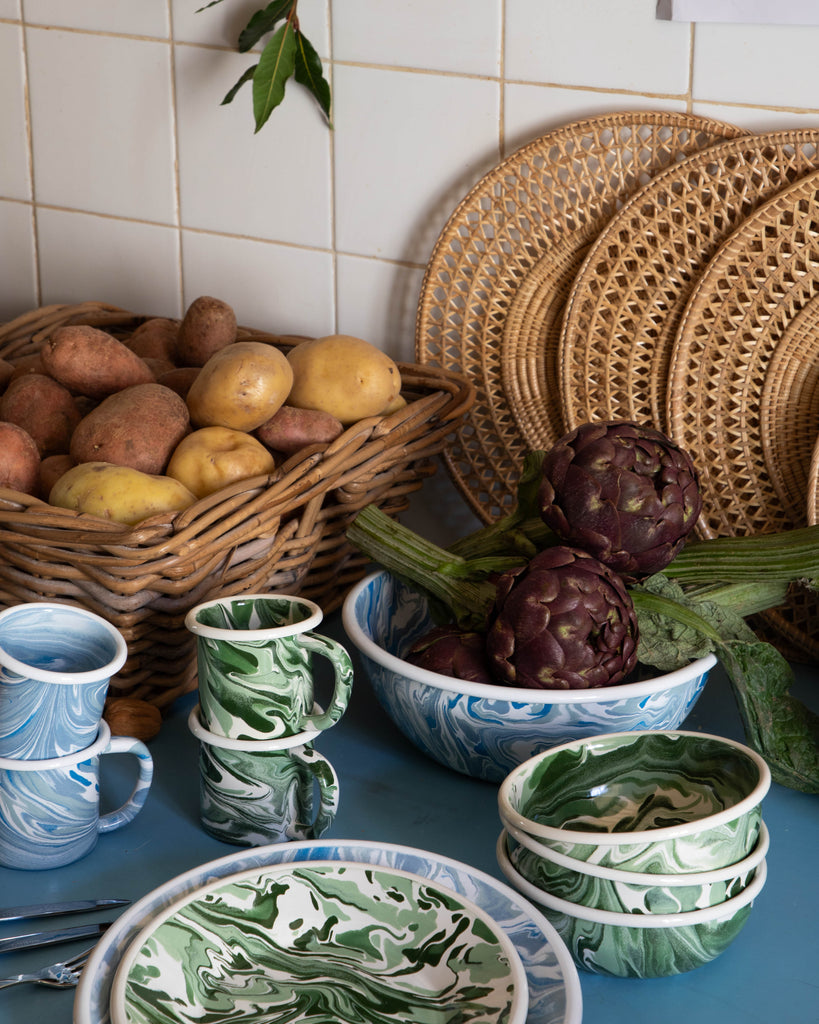 Playful, durable and versatile, the Marbled Enamel Small Bowl finds perfect use whether at home in the kitchen, the garden, at a picnic or at the beach. Its porcelain-infused marbled designs are unique, adding to their distinct charm.