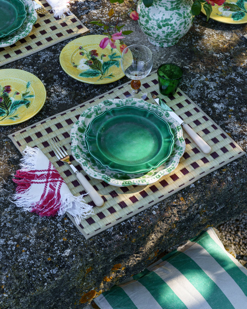 A set of ten deep green scalloped dessert plates, crafted in early 20th century Provence. Their rich hue and classic form evoke timeless regional elegance, perfect for adding a touch of historic charm to any table setting.