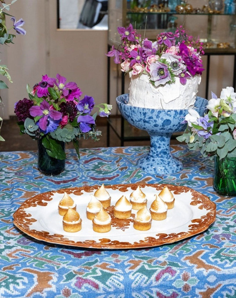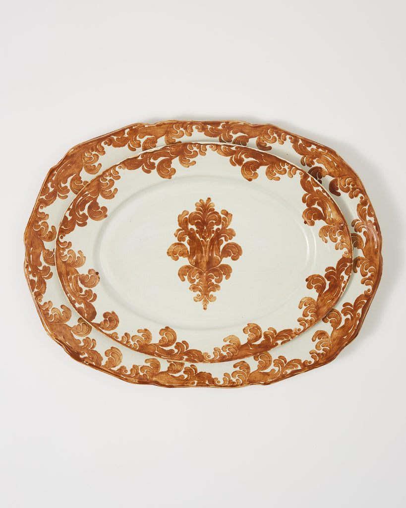 The Damask Serving Plate is handcrafted by Zsuzsanna Nyul, inspired by her Hungarian heritage and designed exclusively for Cabana. The plate is hand-crafted from high-fired stoneware, a unique method which leaves the bottom of the plate unglazed. Stamped with a damask floral motif, this plate can be used for formal dinner parties or casual luncheons.
