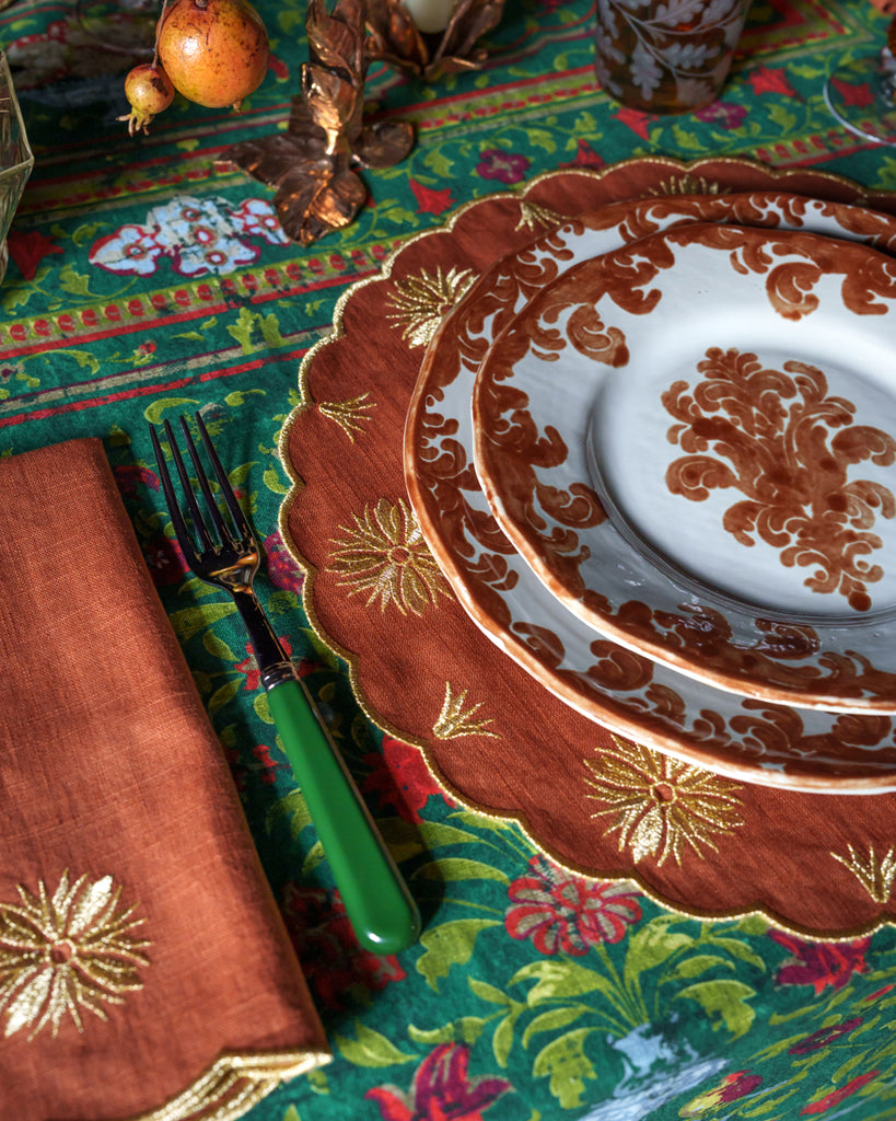 The Damask Dessert plate is handcrafted by Zsuzsanna Nyul, inspired by her Hungarian heritage and designed exclusively for Cabana.