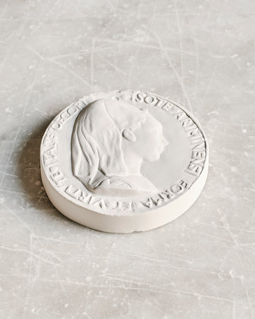 Each cast is taken from an archival mould, poured in fine plaster, then carefully released, trimmed, and finished by hand to a luminous matte surface with crisp relief. Subtle variations and delicate tool marks reveal the maker’s touch. It brings a quiet note of classicism to contemporary interiors—a collectible that lives at the intersection of art, design, and decorative craft.