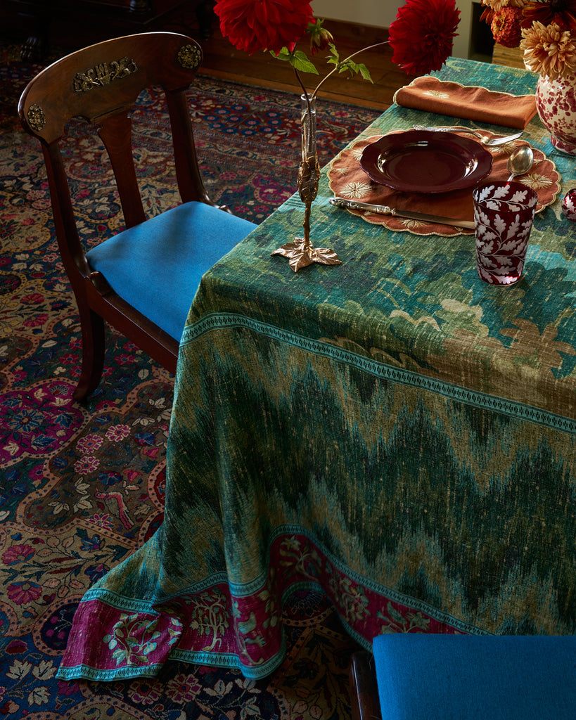 Elevate your holiday table with the Hardwick Tablecloth, a masterful blend of hand-spun mix of cotton and pure linen, designed by D'Ascoli exclusivley for Cabana. Inspired by the countryside elegance of English Tudor manors, this tablecloth features intricate hand embroidery that brings a sophisticated charm to your table setting. Its generous size and durable craftsmanship make it perfect for special gatherings.