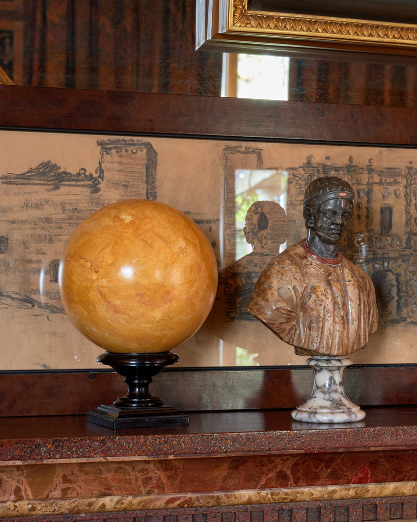 Add a warm, artistic touch to your space with this handcrafted orange decorative sphere. The sphere, rich in color and subtle texture, radiates a warm glow that complements a variety of interiors. Paired with a sleek black base, the sphere can be displayed together or separately, allowing for versatile styling options on desks, bookshelves, or tabletops. With its timeless charm and bold simplicity, this decorative sphere is a perfect accent piece that combines craftsmanship and elegance.