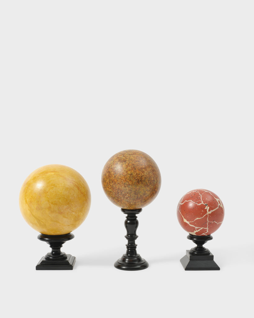 Enhance your space with this medium-sized handcrafted decorative sphere in a warm ochre hue. The sphere’s rich, earthy tones and smooth finish bring a touch of natural elegance, making it a beautiful accent piece for any interior. Paired with a classic black base, the sphere can be displayed alone or with the base for versatile styling options on mantels, shelves, or side tables. Its timeless color and minimalist design make it a standout addition that complements various decor styles.