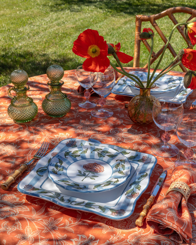 This Destree x Cabana Tablecloth is printed in Italy on 100% linen. Its floral motif, rendered in a soft orange monochrome, pairs effortlessly with the collection’s ceramic plates and is packaged in a matching storage pouch.