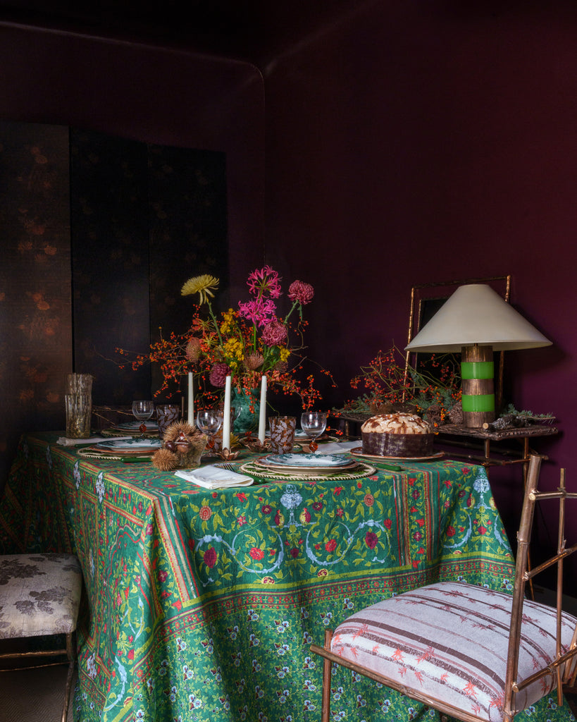Inspired by the elegant wall frescoes in Rajput palaces, this exuberant design features floral bouquets and vines overflowing urns set amidst decorative arches and borders. Adorn your table with the Esmerelda Table Linen for a sophisticated and lavish celebratory mood. Pair with the Rubino placemats and Natale napkins to complete the look. This D'Ascoli linen is exclusive to Cabana.