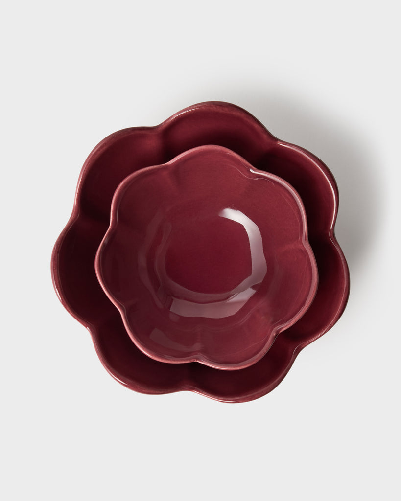 Crafted in Italy with a rich burgundy glaze and scalloped edges, the Fiore Bowl elevates everyday dining. Pair them with their matching dinner plates and bowls to complete the set.