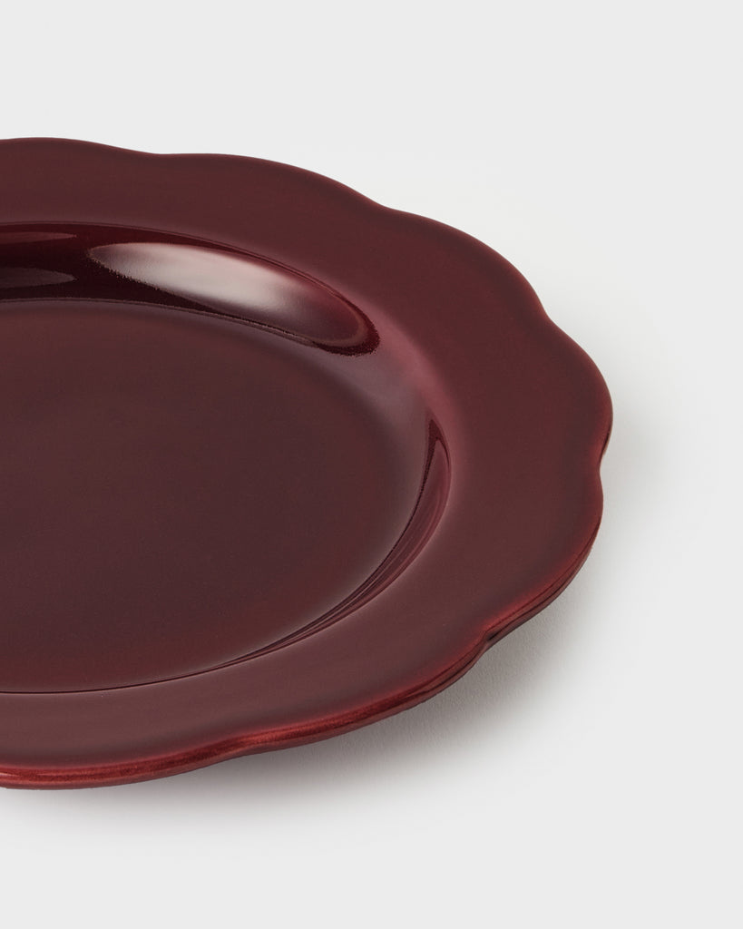 Crafted in Italy with a rich burgundy glaze and scalloped edges, the Fiore Dessert Plate elevates everyday dining. Pair them with their matching dinner plates and bowls to complete the set.