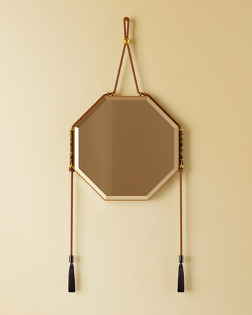 Octagonal Wall Mirror by Giuseppe Porcelli is crafted with an octagonal mirror in polished steel with chrome detailing, bamboo root accents, and silk tassels. A sophisticated reinterpretation of decorative tradition, it combines precision craftsmanship with poetic restraint.