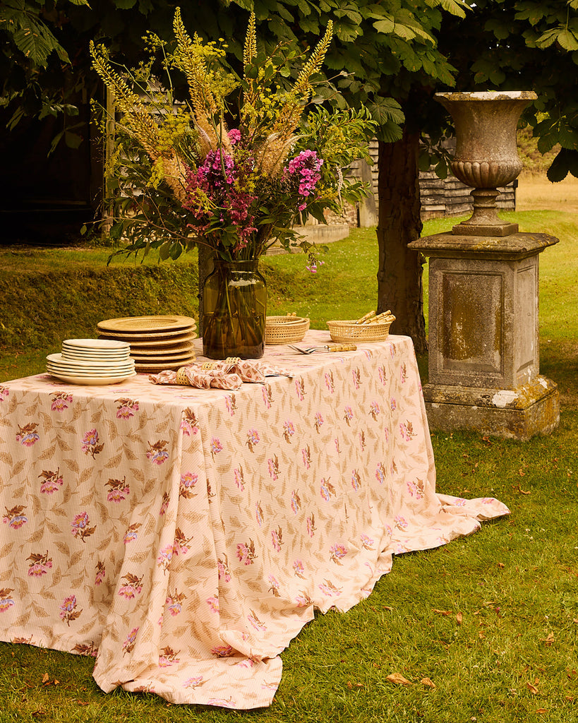 The Terracotta Collection is a stunning ode to Italy's visual identity, defined by the rich, earthy tones of the country’s natural landscape, its celebrated terracotta rooftops and sunbaked joie de vivre. The Lavinia Terracotta Tablecloth is printed in Italy on 100% cotton with a floral pattern inspired by vintage paper illustrations. Wrapped in a matching patterned bag, it offers an elegant solution for storage.