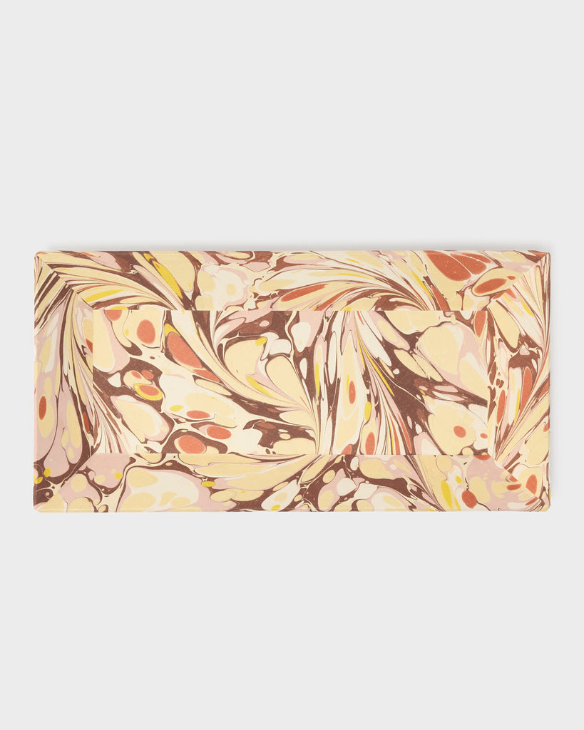 Marbling is an ancient technique from the Orient, which is known in history for its mastery of abstract decoration. The marbled pattern is created by combining pigments, oils and water in different quantities in a vat, which are then mixed carefully by the craftsman to create unique designs that can never be exactly recreated.