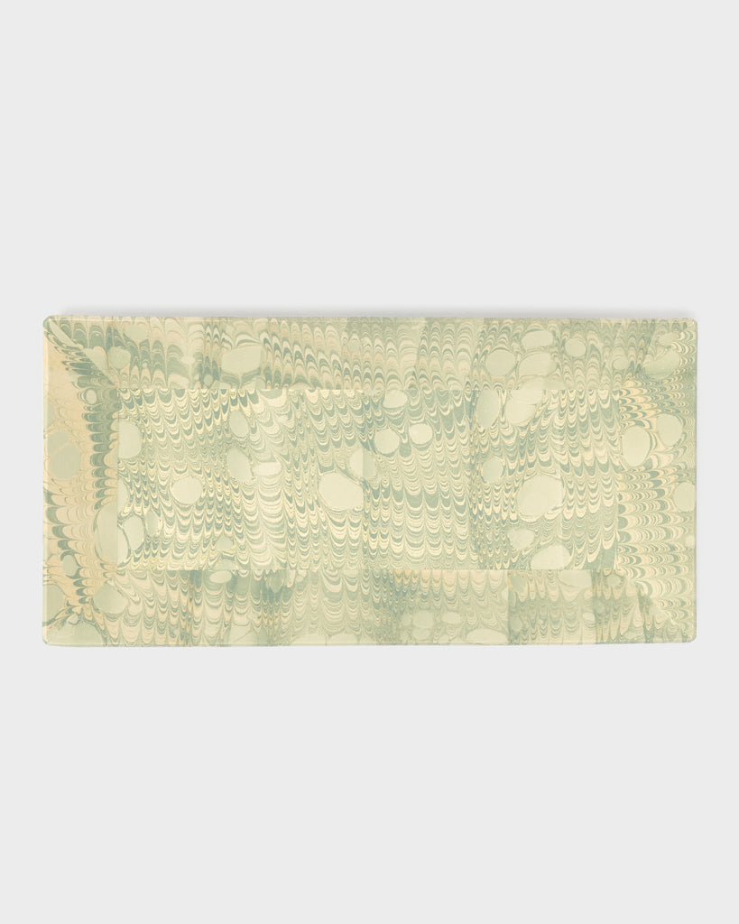 Marbling is an ancient technique from the Orient, which is known in history for its mastery of abstract decoration. The marbled pattern is created by combining pigments, oils and water in different quantities in a vat, which are then mixed carefully by the craftsman to create unique designs that can never be exactly recreated.
