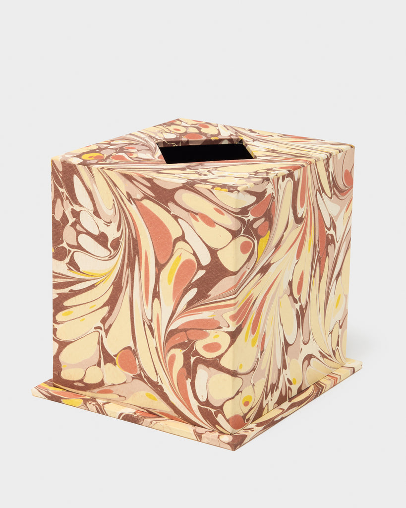 Marbling is an ancient technique from the Orient, which is known in history for its mastery of abstract decoration. The marbled pattern is created by combining pigments, oils and water in different quantities in a vat, which are then mixed carefully by the craftsman to create unique designs that can never be exactly recreated.