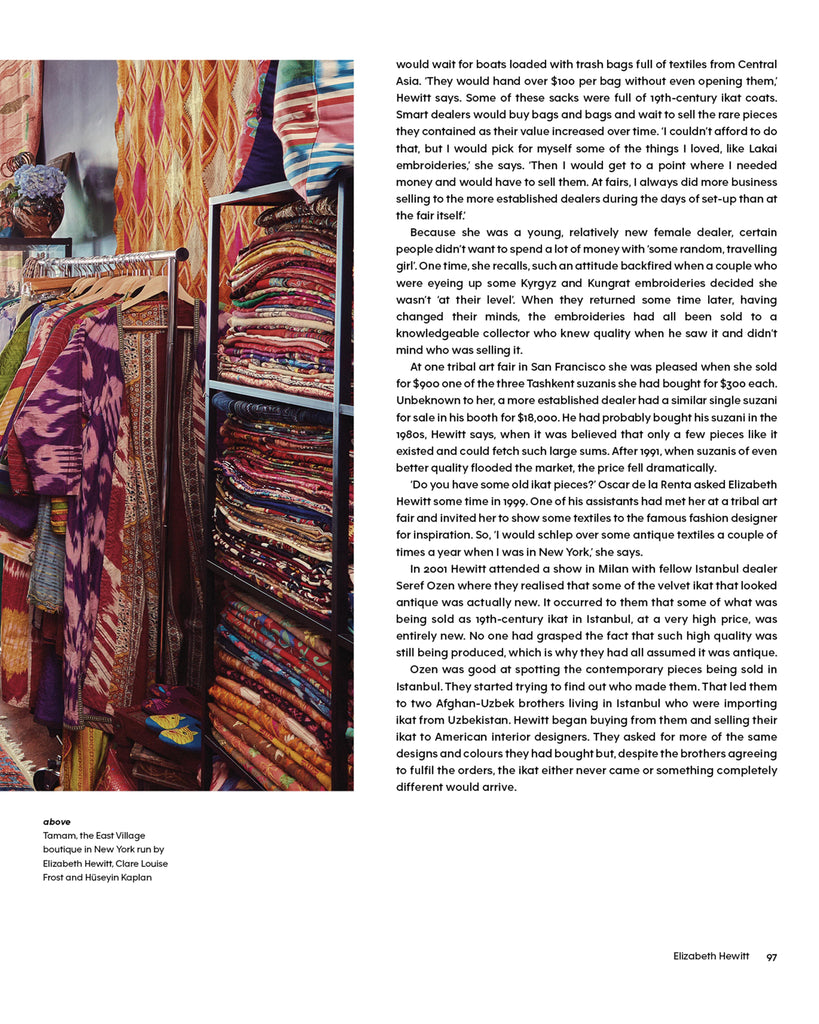 The dealers and collectors who have spent their lives seeking these complex pieces of the past have intriguing stories to tell and collections of some of the finest textiles of their kind in the world. Taken together, their stories are an enlightening guide to understanding how we connect to the past, and how textiles connect the world.