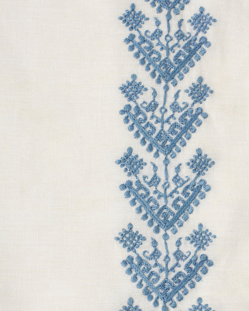 The Schemata Linen Placemat is woven in the finest Egyptian linen and features a geometric border of embroidery. Hand-crafted by Malaika Linens, a women's cooperative artisans in Egypt, its exclusive design pays homage to traditional Greek folk motifs and embodies the spirit of age-old Mediterranean craft and culture.