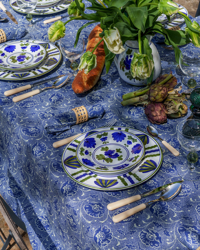 The Toscana Napkin motif takes inspiration from a 19th-century French textile. It is an elegant yet neutral pattern, which blends seamlessly in any setting. Crafted in Tuscany on 100% linen, these napkins feature a delicate yet simple motif of blooming flowers and elegant vines. This set of four napkins is beautifully presented in a matching linen pouch.