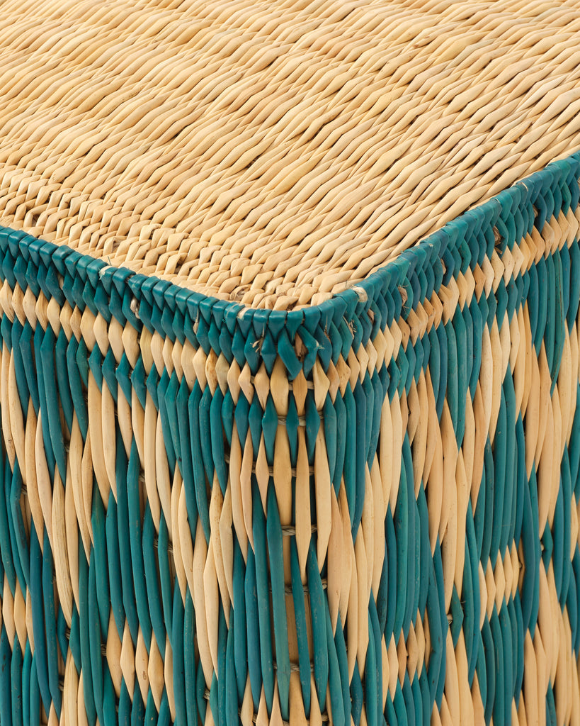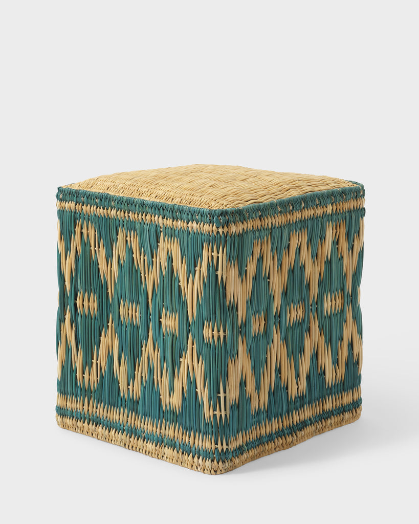 These wicker stools are hand-woven in Morocco and feature a bold black geometric pattern based on traditional textile designs. They are the perfect addition to a salon or bedroom. Lightweight yet sturdy, they typify Cabana's love of simple objects whose construction and pattern embody worlds of history and tradition. Sold as a set of two